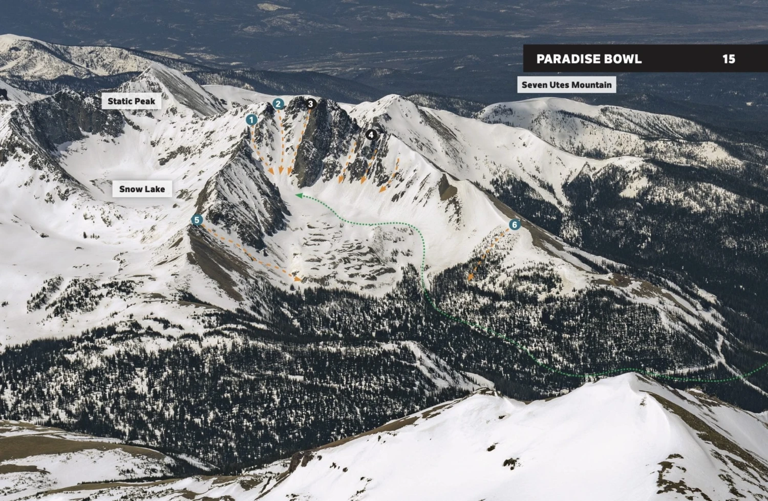 This 5.5” x 8.5” spiral-bound book covers the following zones: Kelly Ridge, Ruby Jewel Cirque, Clark Peak, Sawmill Creek, Montgomery Pass North, Montgomery Bowls, North Diamond Peak, South Diamond Peak, Zimmerman Lake, Hot Dog Bowls, Enchanted Forest, Iron Mountain West, American Lakes South, Snow Lake Ridge, Paradise Bowl, Nokhu Crags North, Lake Agnes Bowl, Braddock Peak East, Braddock Peak West, Seven Utes Mountain East, Seven Utes Mountain West.