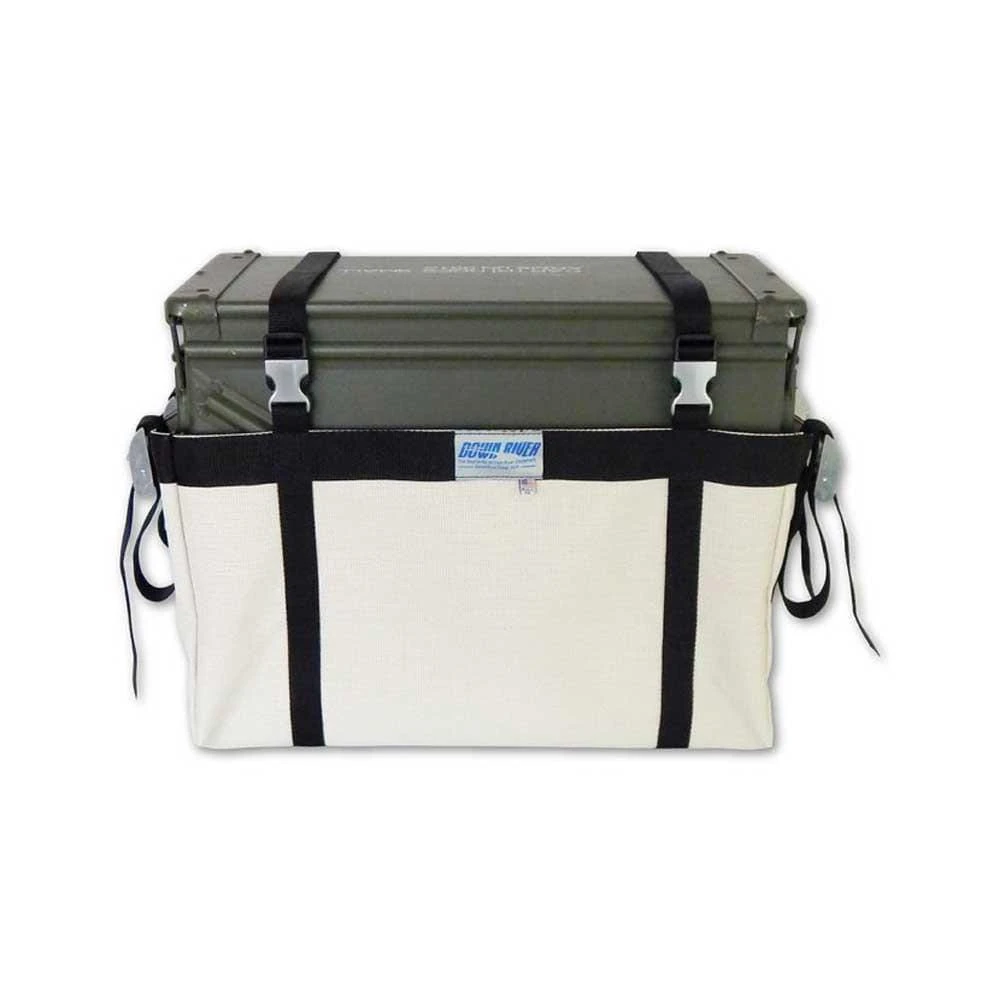 The Down River Rocket Box Sling XD is designed for outfitter use and abuse. Constructed from Phiphertex Plus, a quick-draining, breathable and durable mesh, this sling improves upon our original tried and tested sling. Attaches securely to your frame with 4 cam straps. Designed to hang between two crossbars on your frame and store a 20mm Rocket Box to help conserve precious storage space.