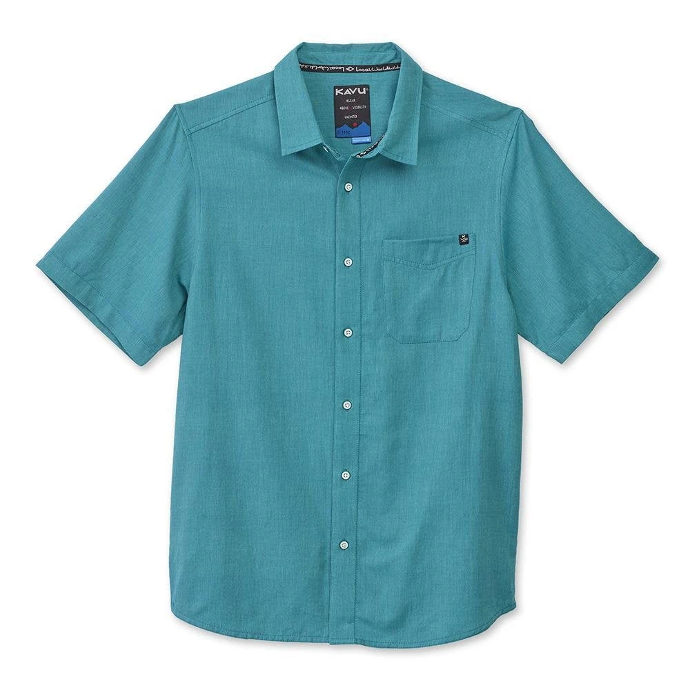 Casual fit, short sleeve button up shirt, stand collar with interior logo jacquard tape, single chest pocket, curved hem.