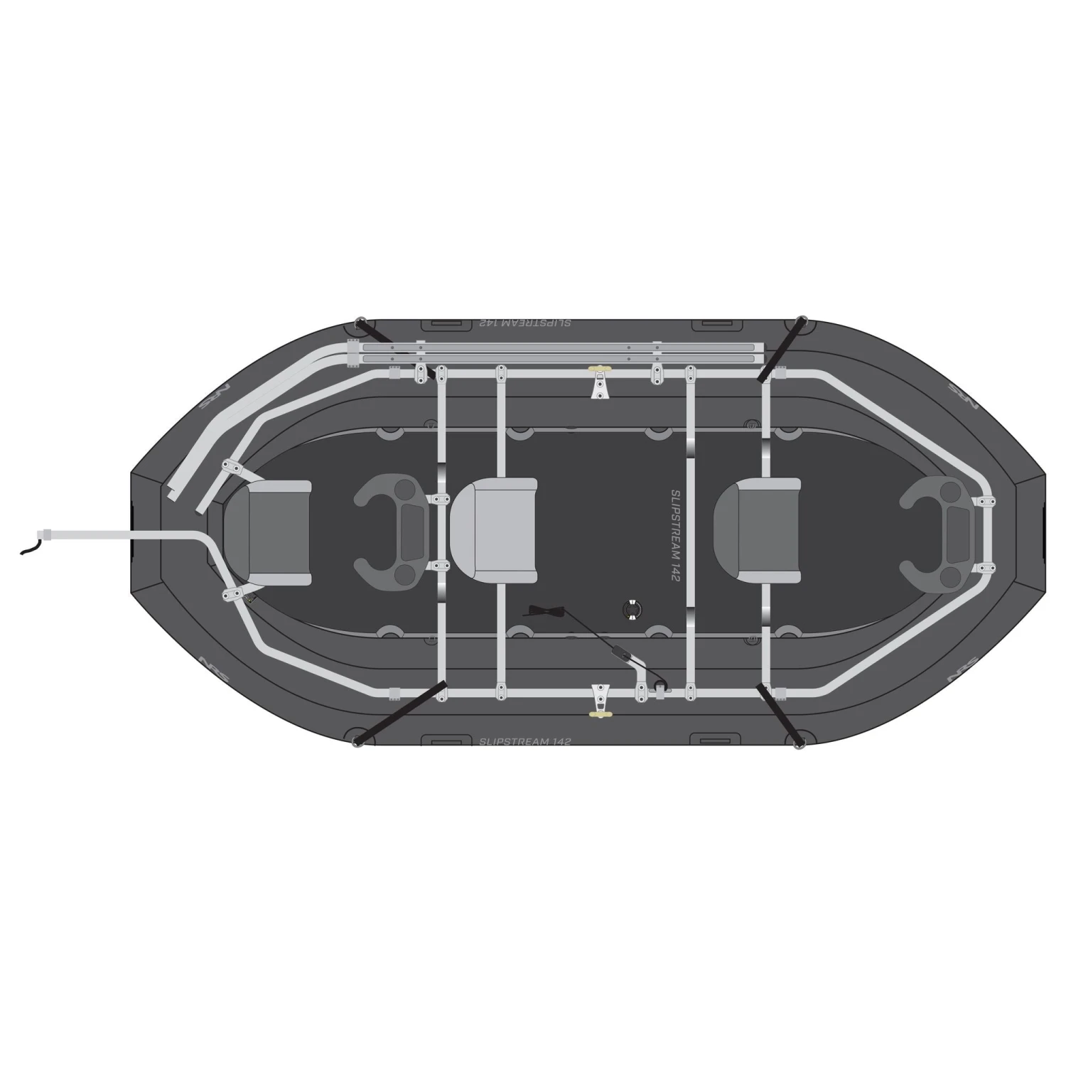 - Purpose-built for up to three anglers plus gear, the Slipstream 142 features a streamlined design with deliberately placed D-rings, handles and valves to reduce weight and eliminate line/hook catch points.