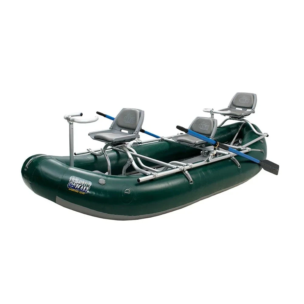 The Outcast PAC 1300 Fishing Raft is bound to turn heads at the put in! The PAC 1300 is one of the most compact 3-person fishing rigs out there, allowing you and your buddies to get places and take lines that other rigs can’t. This sporty, maneuverable rig is based off of the AIRE Super Puma, and can handle both technical low water lines and high water spring runoff with ease! The NRS Fishing Frame on this boat features thigh hooks and rigid casting decks, allowing the anglers to stay in position while casting during small rapids, and the Outcast swivel seats provide maximum comfort and fold-down convenience. Looking for a rig that you can confidently use for the full season? The Outcast PAC 1300 is for you!