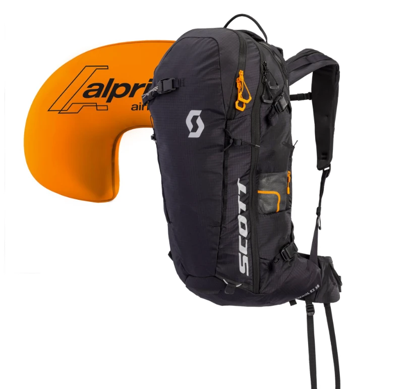 - With its 38-liter volume for big freeride days in the backcountry, the SCOTT Patrol E2 38 is the ultimate freeskiing avalanche backpack, evolving from the iconic SCOTT Patrol E1 40 and pushing the boundaries of innovation. It features the Alpride E2 Airbag system, the lightest on the market to date. Equipped with state-of-the-art supercapacitor technology, its new slimmer design makes it the perfect ally when every gram counts.